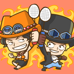 ワンピースのキャラクターがバドミントンを楽しむスタンプ、第2弾です!今回はエース、サボ、ロー多めで作りました!バドミントン王におれはなるっ!!
