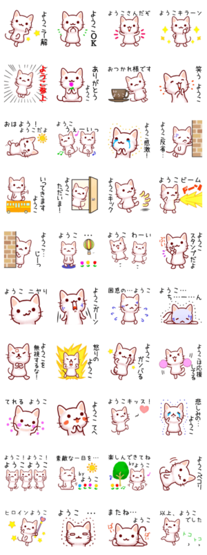 ネコのヨウコさんスタンプです。洋子さん、陽子さん、葉子さん、まだまだたくさんのヨウコさんへ。是非使ってみて下さい。よろしくお願いします。ペコリ より発売