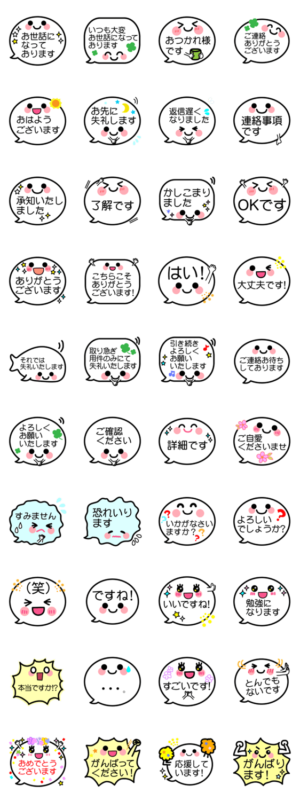 正しい敬語吹き出し君ビジネス顔文字 スタンプに書いてある文字一覧