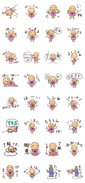 天使と人間の合いの子、天子ちゃん。気楽な「OK!」から、ちょっとかしこまった「承知しました」まで、その時の気分に合わせたぴったりの返事が選べる「OK」シリーズ。selakiki より発売