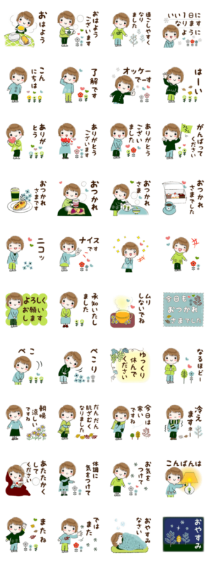 涼しい秋から寒い冬の始まりに、普段どうりに使いやすいスタンプです。taemama より発売