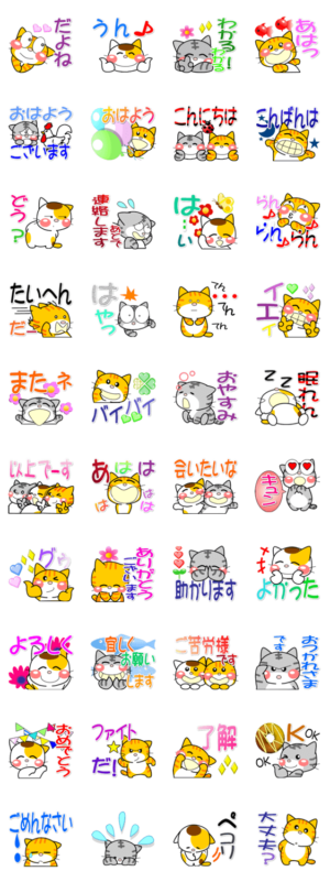 毎日楽しく使える可愛い3匹の猫たちのシンプルなスタンプです。ohausa より発売