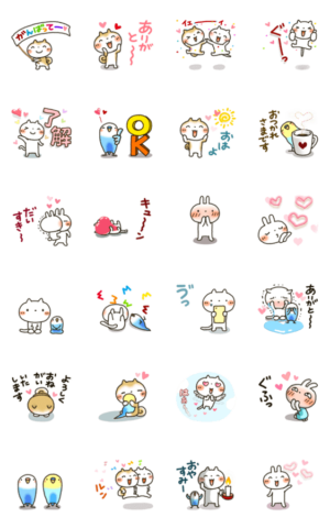 使いやすい日常スタンプです。「やさしいスタンプ」の仲間たちが、あなたの思いをやさしい動きで伝えます。(♡多めです!)Honobono より発売