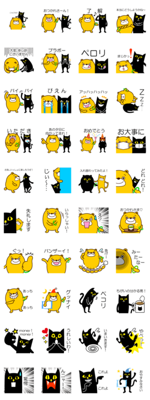 えこまる君&オニキス君 スタンプに書いてある文字一覧