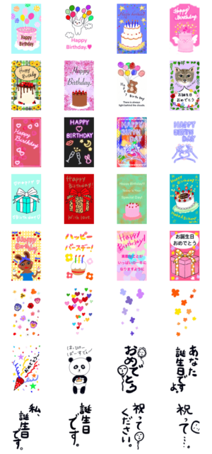 お誕生日のお祝いスタンプ。いろんな種類のメッセージで大きくお祝いできます。