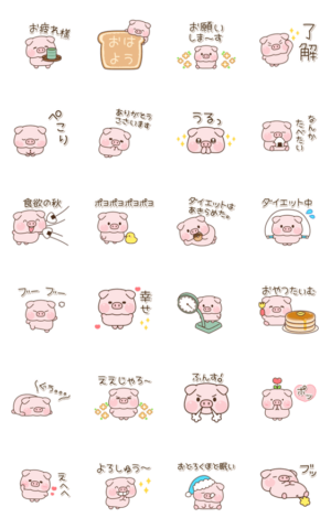 食いしん坊な子豚による食欲の秋にも使える便利な日常会話スタンプです。DECOR より発売