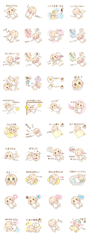 可愛い赤ちゃんの日常あるあるほっこりスタンプです。成長に合わせて使ってね♪「Cute Baby」女の子ver、男の子verの絵文字も好評販売中です♪