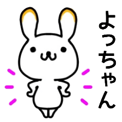 ウサギのヨッちゃんスタンプです。佳子さん、義樹さん、吉田さん、良枝さん、まだまだ沢山のよっちゃんへ。是非使ってみて下さい。よろしくお願いします。ペコリ より発売