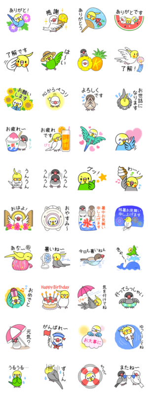 インコ と 文鳥 (夏編) スタンプ画像一覧