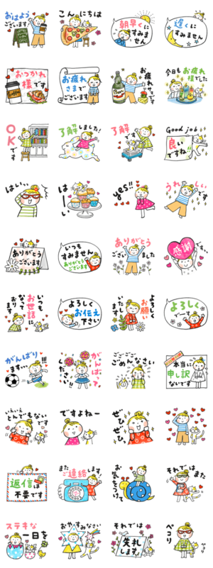 毎日良く使う敬語を集めました。お仕事やパートやアルバイト、家族やママ友、先輩へも♪OLさん、テレワークにも!(こちらは再販のスタンプです。一部文字の修正あり)