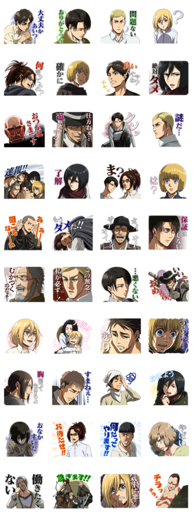 進撃の巨人が好きで購入しました。基本的な挨拶はもちろんのこと、ちょっと笑ってしまうような面白いスタンプもあり汎用性が高いので気に入って使用しています。