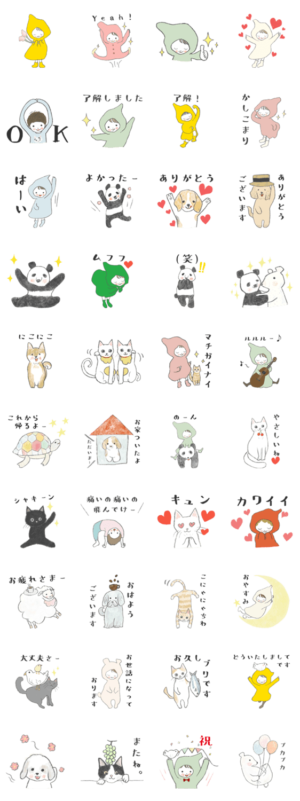 絵本の中をのぞいたような、ノスタルジーなこどもたちのスタンプ第6弾。ゆかいなほっこりこどもとどうぶつたちのゆるい日常会話。