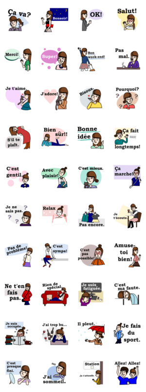 フランス語を話す女の子のスタンプのPart2です。フランス語勉強中の方や海外のお友達などとフランス語でLINEトークしてみませんか?