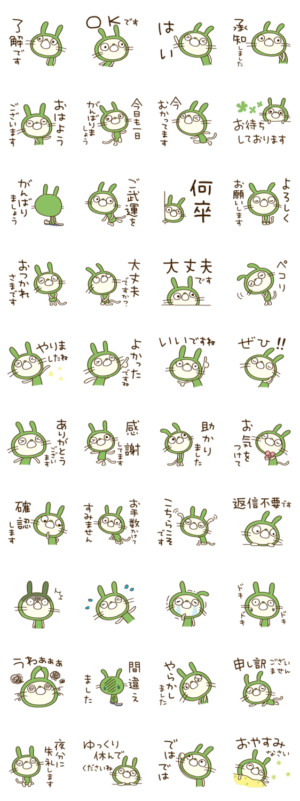 うさぎのにゃスタンプです。敬語挨拶で、日常的に気軽に使えます!