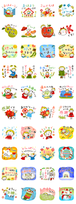 「仲良しともだちシリーズ」秋と冬に毎日使える、日常言葉のスタンプです☆ハロウィン、クリスマス、年末までOK♪※こちらは以前販売したスタンプの改訂版です。