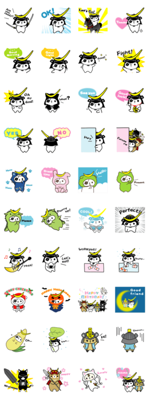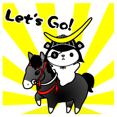 日本の仙台市宮城県の戦国武将「伊達政宗」公の三日月兜がトレードマークのご当地キャラクター「独眼竜ねこまさむね」の英語スタンプです。
