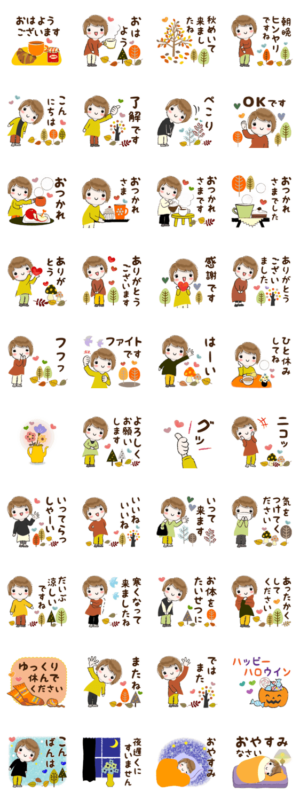 涼しい秋の始まりに、普段どうりに使いやすいスタンプです。