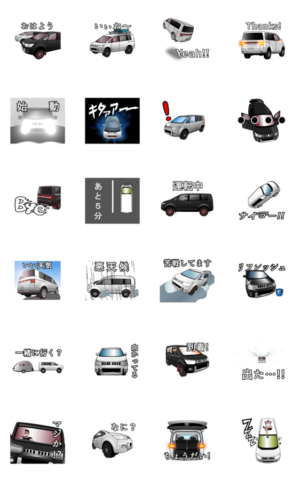 4WDをイメージしたデリカシーのあるクルマのスタンプ。 5ドアの特性を活かしたくるまのアニメーション。ryo より発売