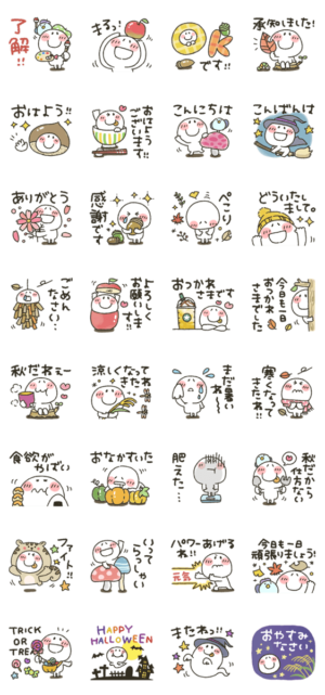 まるぴのスタンプ77作目は秋バージョンです。ハロウィンもあります!かなぴ より発売