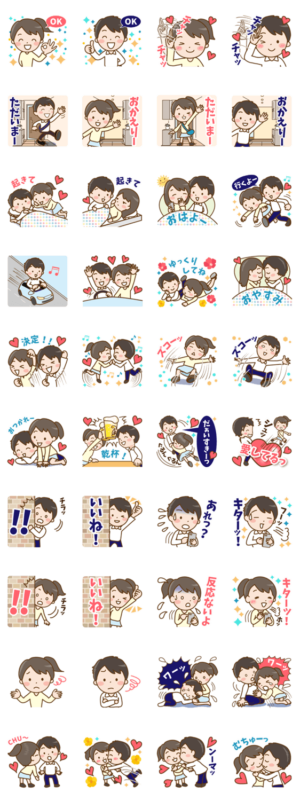 カップルで使えるスタンプです。学生、社会人カップル、遠距離恋愛、単身赴任の夫婦や恋人同士で送りあうのにオススメです。