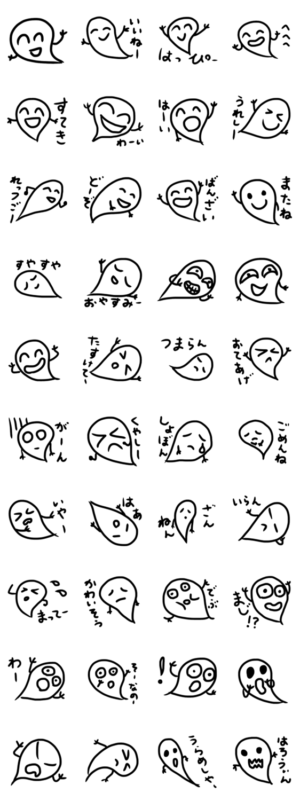 可愛らしいお化けのスタンプです! ハロウィンになると、お菓子をもらいにどこからともなくやってきます!Age design より発売