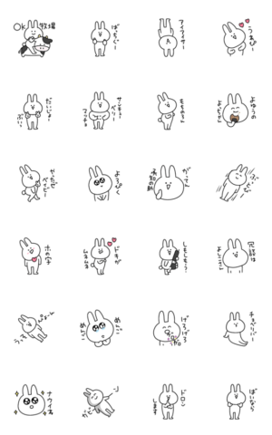 シュールなウサギの動く死語スタンプです。eribo より発売