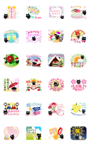 年中使える祝い事スタンプ・黒猫子猫ちゃんのダウンロードはこちら↓