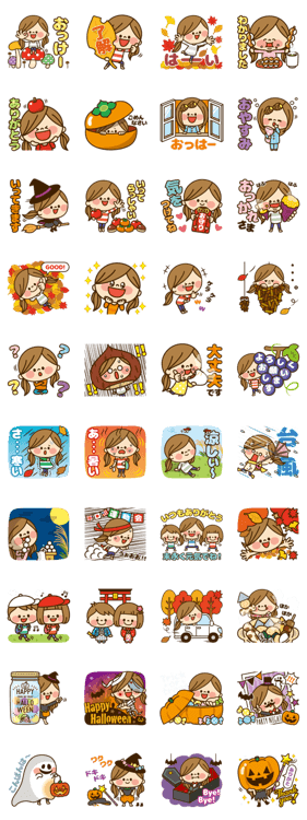 かわいい主婦の1日第25弾【秋編】はかわいい女の子の秋にピッタリ!使いやすいスタンプです。 ハロウィン、紅葉、七五三、運動会などイベント盛りだくさんスタンプです!