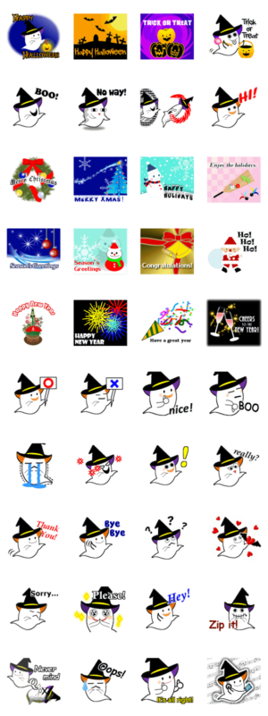 ハロウィンから正月のスタンプ(英語版) スタンプ情報