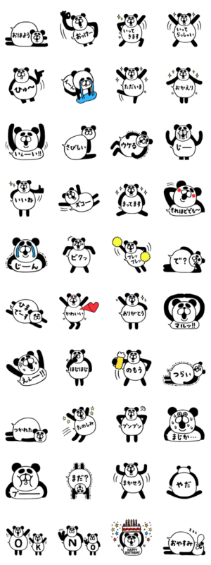 吹き出しになったパンダがメッセージを伝えてくれるので、文字打ちなしで大丈夫です。green peas より発売