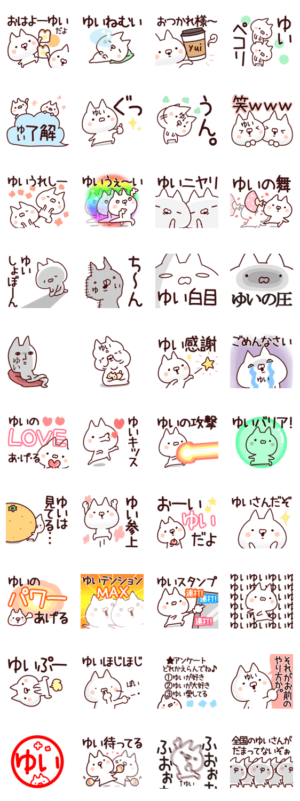 ゆい、ちゃん、さん、が使える、ゆるい名前/あだ名スタンプ。ユイ/yui/ゆいか/ゆいな/ゆいみ/ゆいの/ゆいり/ゆいこ/由依/結/唯/由衣/専用1、可愛い、ねこ/山田まぽん作山田まぽん/名前スタンプ より発売