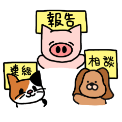 くるまいすに乗ってるぶたのぶーさん。ちょっとシュールなぶーさんと今回は、にゃーさん。たろう。と一緒にお仕事バージョン。