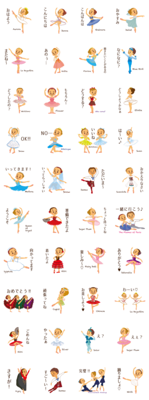 かわいいバレエちゃん達の日常会話です。かわいい衣裳とポーズで楽しい会話を盛り上げます。挨拶、相づちにも便利。