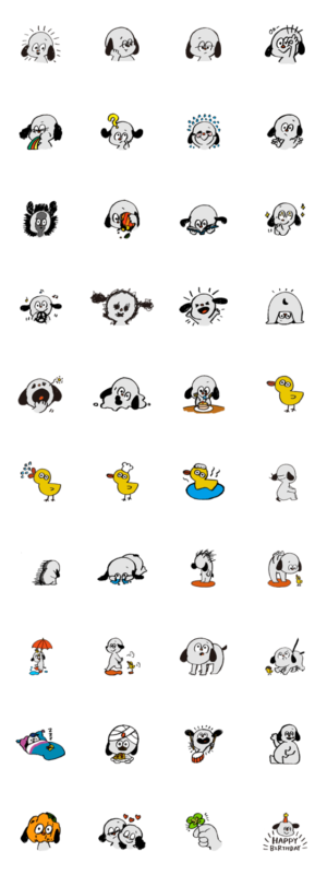 ペロと親友のキムラ、ペロのことが大好きなデイジーの日常スタンプです。pan より発売