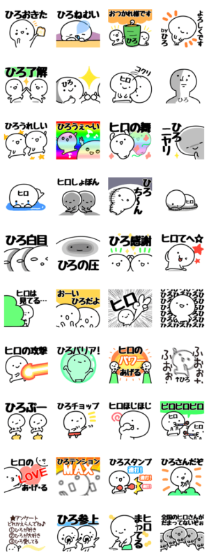 ひろ君(くん)、ちゃん、さん、が使える、ゆるい名前/あだ名スタンプ。ヒロ/hiro/博/ひろや/ひろえ/ひろな/ひろし/ひろき/ひろゆき/ひろこ/ひろみ/ひろ専用1/山田まぽん作山田まぽん/名前スタンプ より発売
