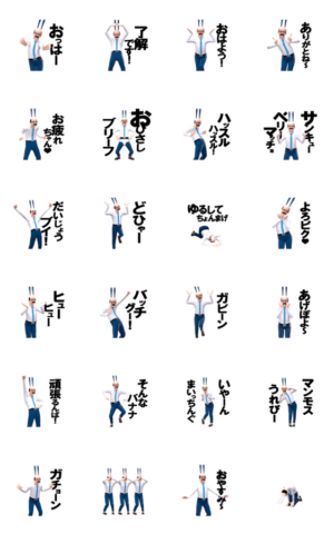 昭和のおじさんのダジャレ、死語スタンプです。仕事で悩んでる部下や上司に送ってあげよう!山口タカ より発売