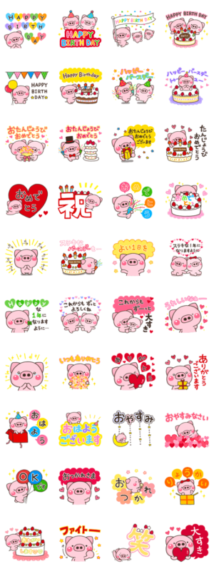 一生使える!お誕生日スタンプ【ぶたさん】のスタンプは可愛くて送ってもらうととてもうれしいです!自分の大切な人に送りたくなるスタンプです!