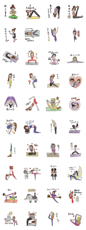 球ちゃんが作ったヨガスタンプ。 使いやすい言葉や季節も入れた盛りだくさん。 ヨギーニの方に是非使って貰いたいです。