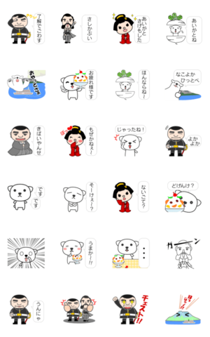 鹿児島県の方言。かごしま弁を動く(アニメーション)スタンプで楽しんでください!西郷さんや大久保さん、白熊が楽しく動きます!