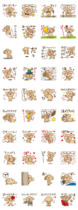 限りなく人間に近いリアクション犬、トイプードルのぷう太郎スタンプの第8弾です。satoco より発売