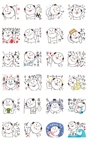 ぽっちゃりハゲ頭のおじさんのほんわか絵文字です。 だじゃれ/死語/かわいい/おっちゃん/使えるみゆどん より発売