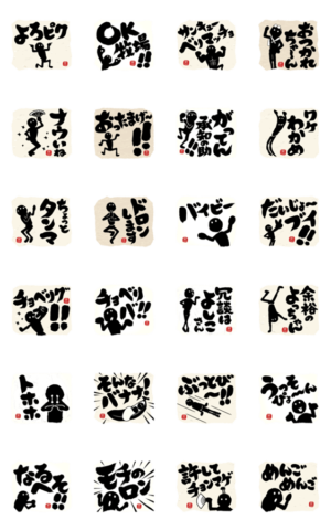 第18弾!!死語・ダジャレで伝えよう!!日本の文化の「筆文字」&アニメーションスタンプで伝えよう!!動く人と墨の文字で会話にインパクトを与えてくれるはず!