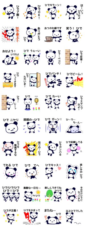 パンダのヒデさんスタンプです。秀美さん、英子さん、英昭さん、秀樹さん、秀島さん、まだまだ沢山のひでさんへ。宜しければ使ってみて下さい。よろしくお願いします。ペコリ より発売