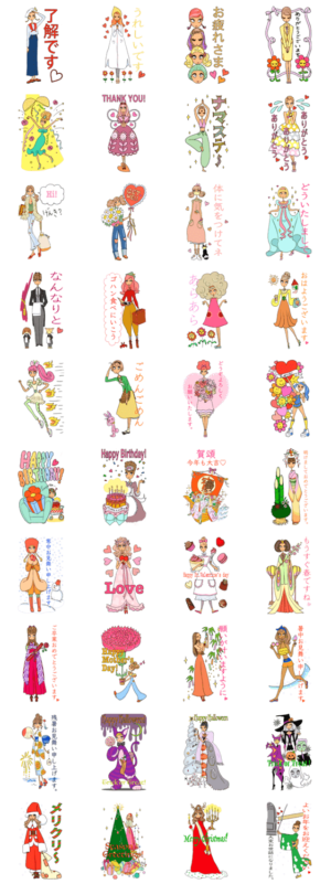 お洒落女子友:グリーティングカード スタンプ画像一覧