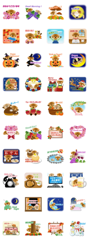 秋冬に使えるトイプードルのスタンプです。Ange より発売