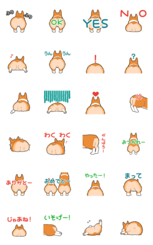 コーギーのおしりが動くスタンプです。ぜろな より発売