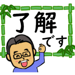 明るい笑顔の50代~80代。とにかく見やすいデカ文字。老眼に一番よく見える白に黒文字デザインで、よく使う言葉、挨拶付き。年配、中年、おじさん、じいじ、おじいさんdokukinoko より発売