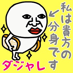 この無表情でシュールな顔のこの子はあなたの分身です。ダジャレのスタンプです。あなたの分身としてお使い下さい。お祝や、誕生日のプレゼントにもおススメです。