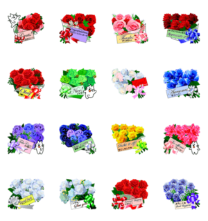 バラの花束にグリーティングカードを添えて スタンプ画像一覧