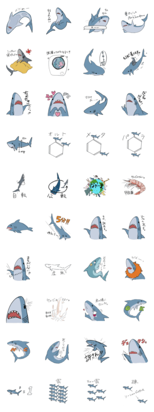 かわいくてかっこいいサメさんに理系の知恵を与えたスタンプも、ついに2個目が完成しました。いつ使うのかわからない言葉も、あなたならきっと使いこなせます。